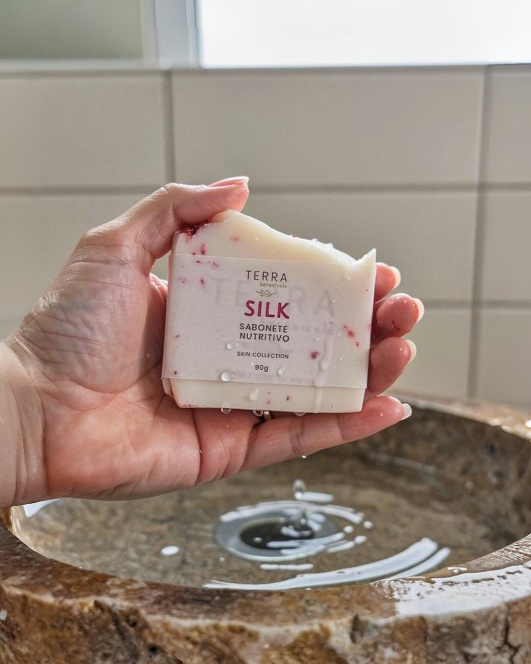 O Sabonete de Banho Nutritivo Silk é artesanal, 100% natural e criado para limpar a pele de forma suave, enquanto a nutre e protege no dia a dia.